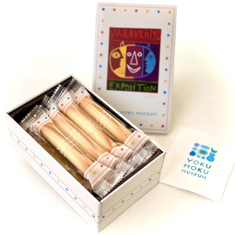 ピカソのセラミック作品やミュージアムのロゴマークをモチーフにしたオリジナルグッズも!写真は、プティ シガール「ヴァローリス」缶¥1,350