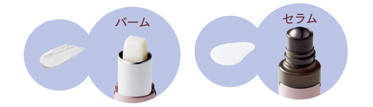 みずみずしいセラムは、塗った瞬間にすばやくなじみます。その上からバームを重ねることでハリ感もアップ!
