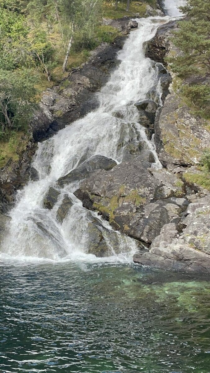 山の上から見下ろすフィヨルドの美しさと、目の前に流れる滝の美しさがダブルで見れるという贅沢な場所でした。