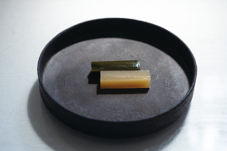 何層にも塗り重ねた漆のテクスチャーが食卓のアクセントに