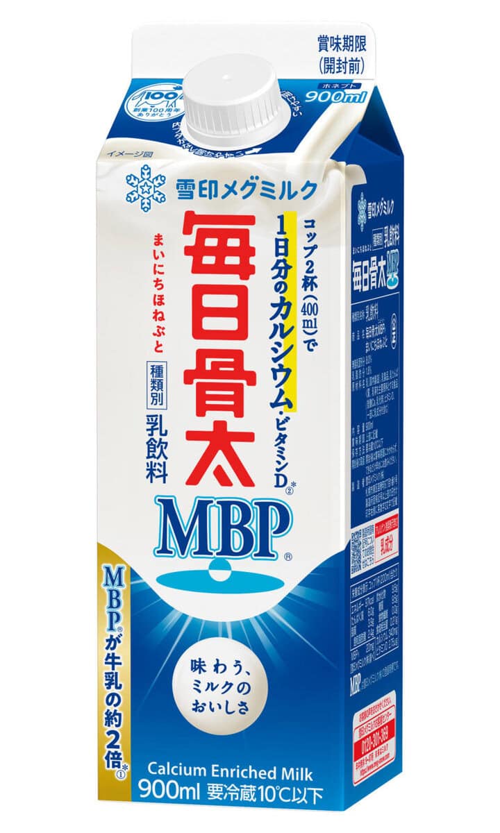 牛乳生まれの希少なたんぱく質・MBPRを配合。コップ2杯(400㎖)で1日に必要なカルシウムが摂取でき、ビタミンDも強化。程よい甘さとすっきりとした味わいで飲みやすく、朝食時などにおすすめです。年齢を重ねてからも元気に歩きたいという方に。900㎖ オープン価格/雪印メグミルク お客様センター