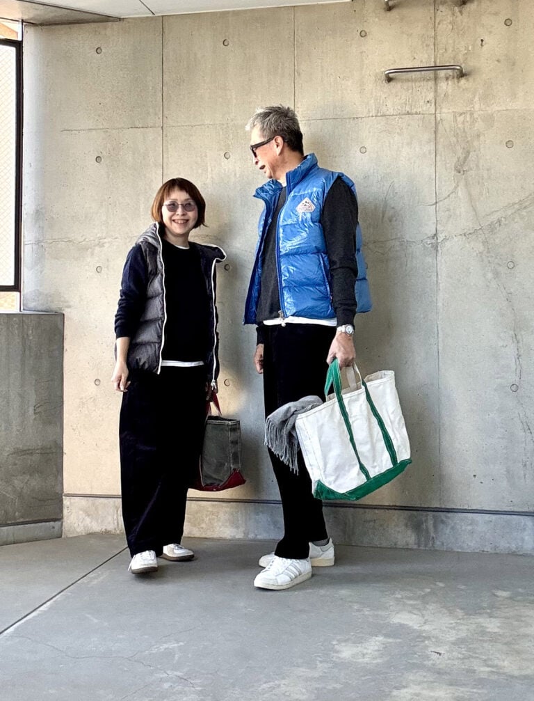ならば私は、ネイビーのコーデュロイでワントーンにまとめて、同じくダウンベストをプラス。今回は“アイテムリンク”でさりげなくペア感を楽しむスタイルにしてみました。