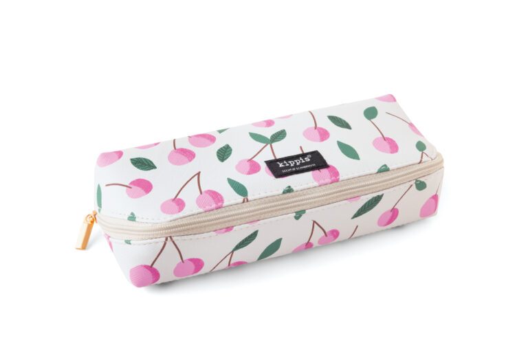 メガネは2本収納可能! さらに、ピアスや指輪などのアクセサリーが収納できるのも嬉しいポイント。コラボしたのは、北欧デザインのテキスタイルブランド「kippis(キッピス)」。今回は、可愛らしいサクランボ柄で、手にするだけで気分も高まるデザインに仕上げました。