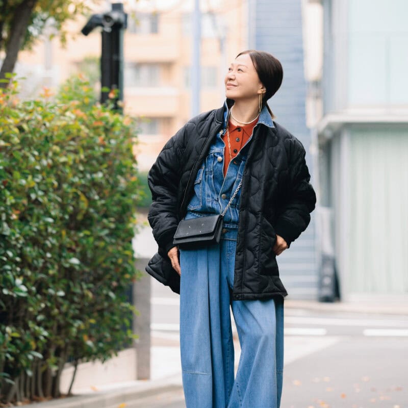 寒さが厳しさを増す、冬本番。そこで、防寒しながらおしゃれを楽しむコツをおしゃれ業界人の皆さんに教えてもらいました。今回はスタイリストでカラリストの岩崎聡美さんのデニムスタイルです。