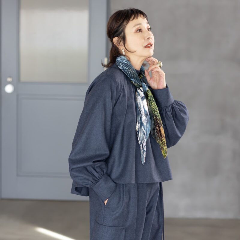 ニュアンスカラー同士の組み合わせが上品。マフラー¥36,300/ジョンストンズ オブ エルガン