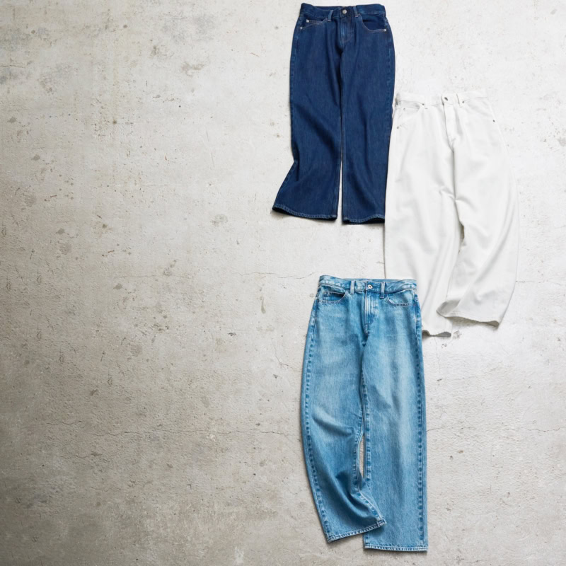 上から ブーツカットジーンズ¥4,990、バギーカーブジーンズ¥4,990/ともにユニクロ、ストレートジーンズ¥4,990/ユニクロ アンド ジェイダブリュー アンダーソン(ユニクロ)