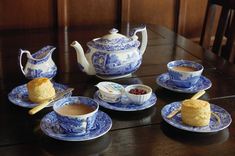 階級差は、使用する茶器の質やデザインにもあらわれます。『ダウントン・アビー』でも、貴族のテーブルにはクロスが敷かれ、銀のティーポットや優雅な絵柄が写された華やかなデザインのボーンチャイナ。対照的に、使用人たちが手にするのは、クリームウエアと呼ばれる白い陶器でシンプルなものです。