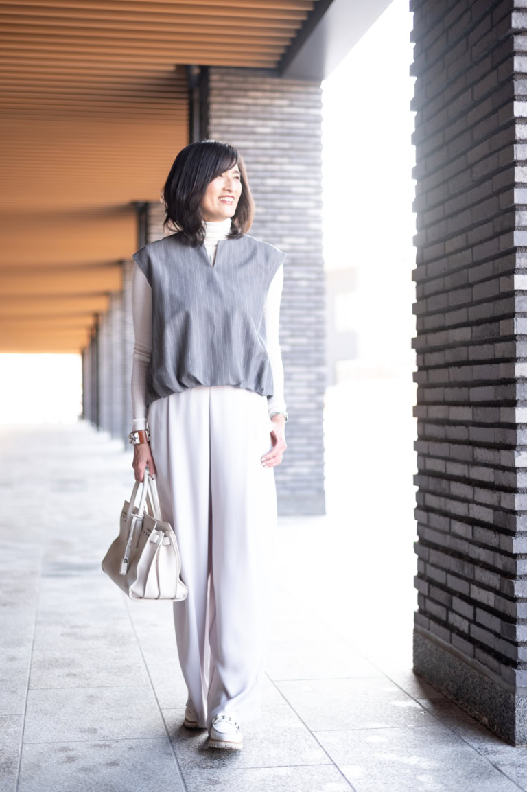 【50代ファッション】きれいめコーデをセンスアップする「こなれ技」とは?脚長効果が狙える着こなしにも注目!【6日間コーデDay3・Day4】
