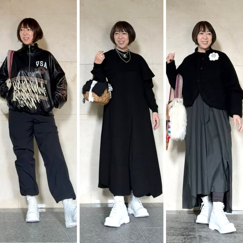 モノトーンの服が多い私は、今年は白ブーツを取り入れて、