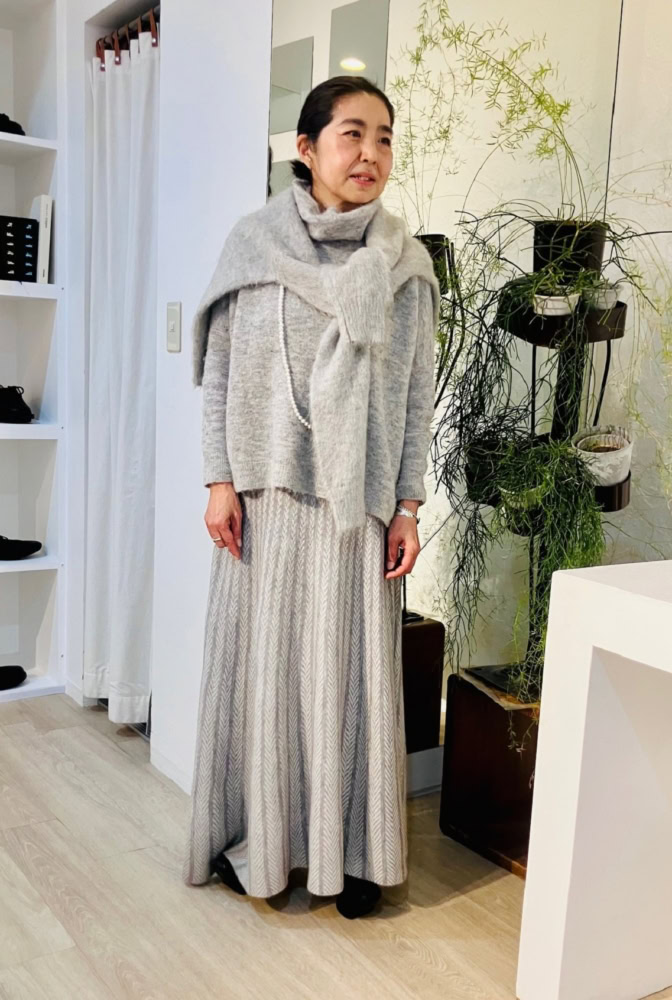 詳しくはこちら! 【60代お手本スナップ】グレーのワントーンに小物で個性をプラスした着こなしが素敵です!|プレス三好和美さん