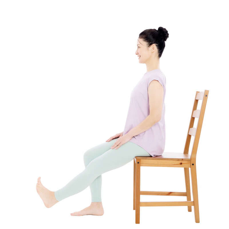 椅子に姿勢よく座り、片足を床から浮かして伸ばし、つま先を自分のほうに向かって持ち上げます(「背屈」の動き)。