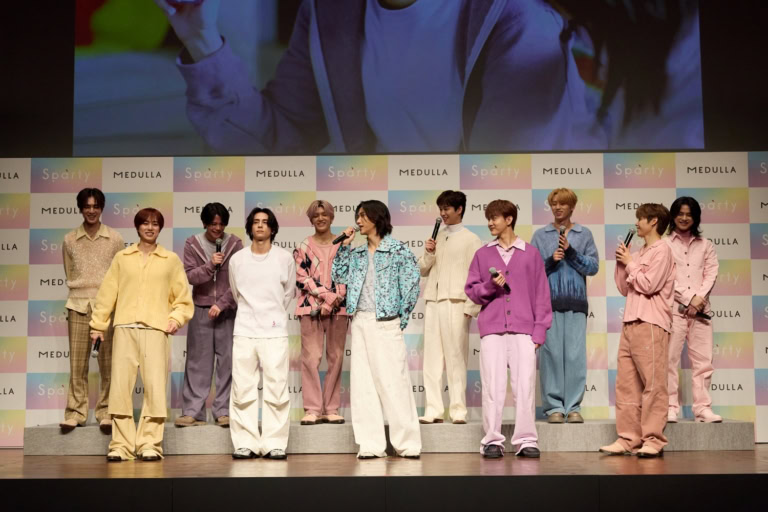 この日はMEDULLAのボトルのパッケージカラーをイメージした衣装をまとい、CM撮影のエピソードからデビュー5周年を振り返ったお話、挑戦したいヘアなどについて語ってくれました。11人の仲のよいワチャワチャとにぎやかなイベントでの様子をお届けします。