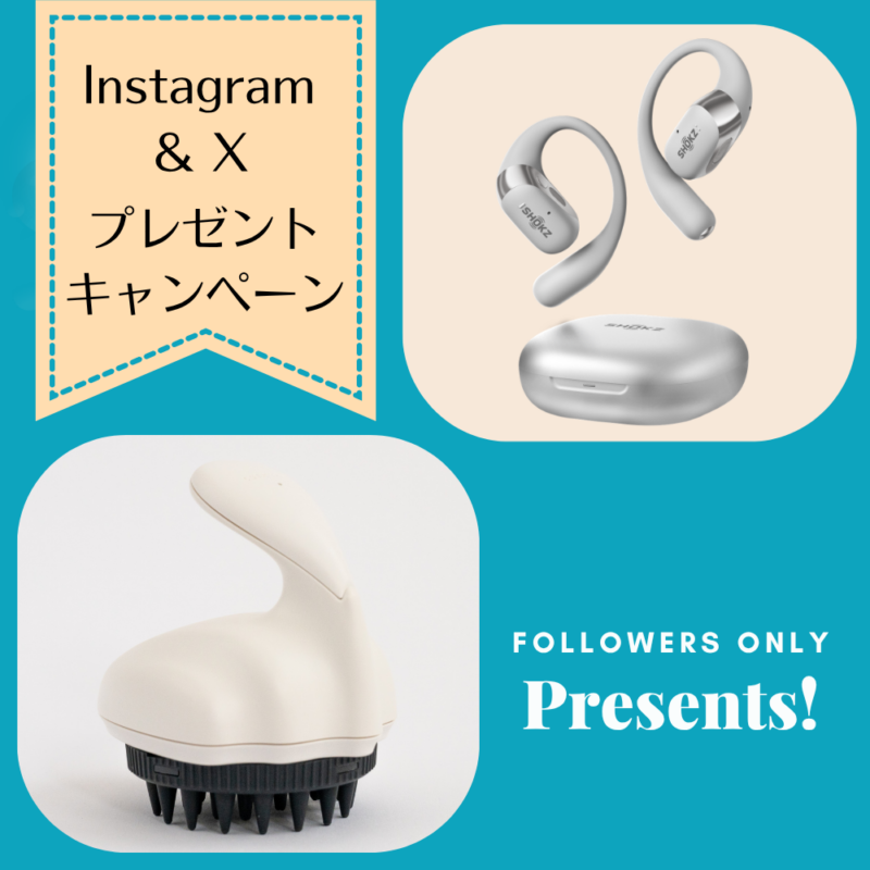 雑誌『素敵なあの人』発の公式Instagramと公式X(旧Twitter)では、フォロワー限定のプレゼントキャンペーンを実施中!今月は、抽選で、わずか15秒で濃密泡が作れる電動シャンプーブラシや、耳を塞がずに音楽が楽しめるオープンイヤー型イヤホンが当たるチャンスがあるので、お早めにご応募ください!