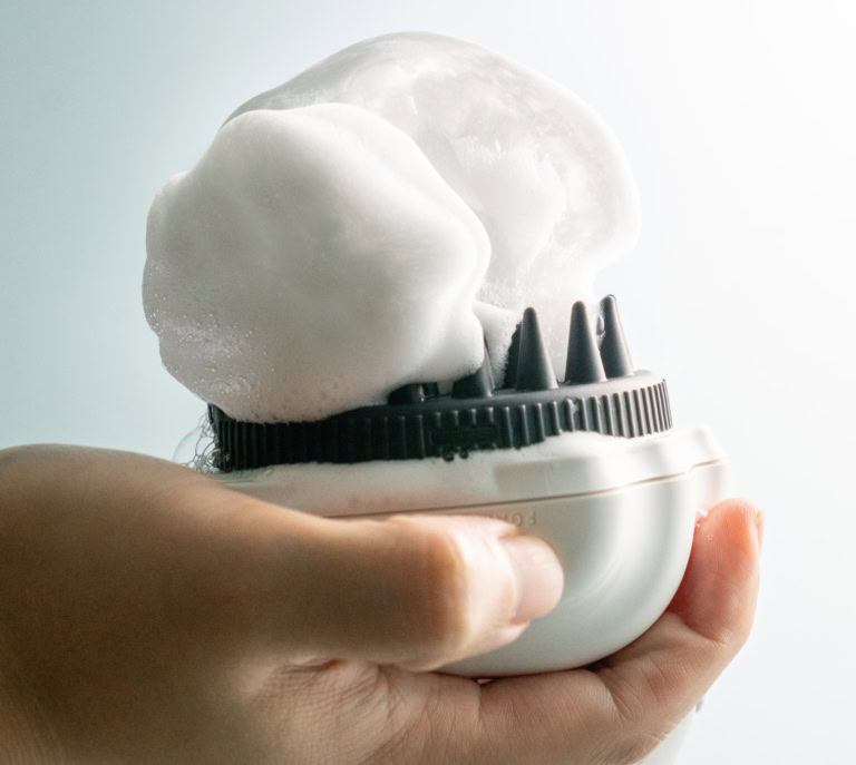 手で作ることが難しいきめ細かな泡で毛穴汚れを浮かせてすっきりオフ。すべらせるだけで頭皮全体を心地よくケアでき、いつものシャンプー時間が癒やしのひとときに。専用シャンプーとセットで。