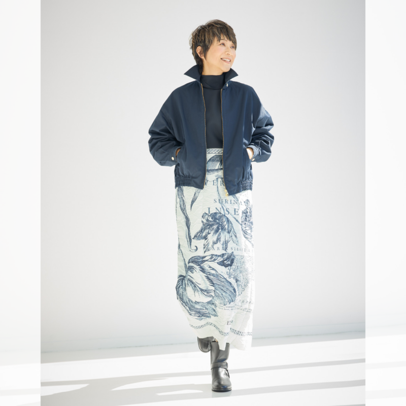 「春から初夏にかけて、なにを羽織ろうか迷ったらスイングトップがおすすめです。1970〜1980年代に流行した、どこか懐かしさのあるアウターが、今季はいまっぽくアップデートされて再注目。ショート丈なので、パンツにもスカートにも合わせやすく、サッと羽織るだけで装いが新鮮に見えます。合わせる服を選ばず、コーディネートの幅を広げてくれる1着です」(樋田)