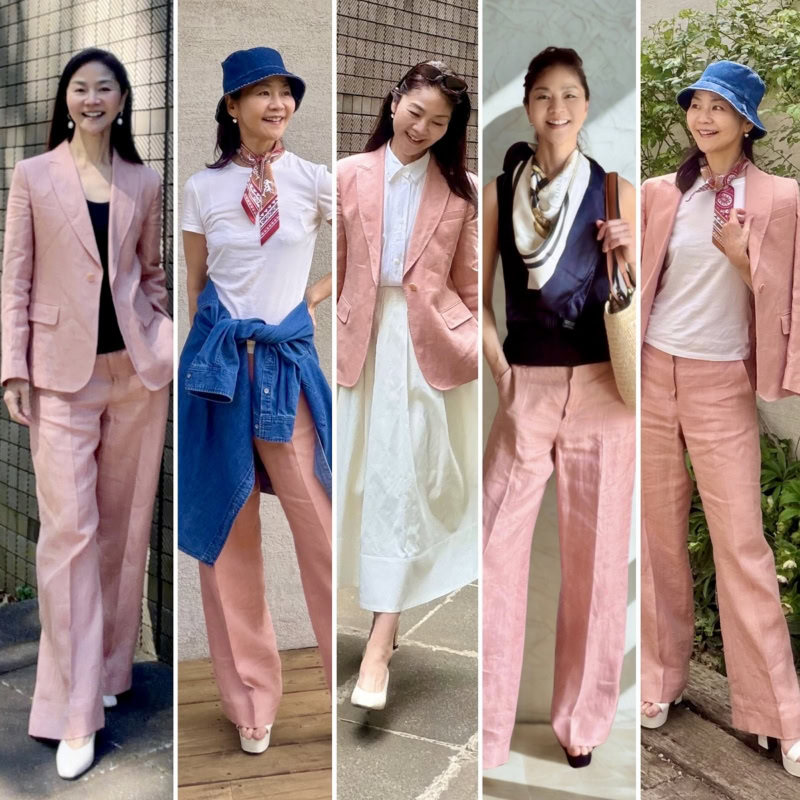 今回は、桜井智子さんの「ピンクのセットアップ」を使った着まわしコーディネートです!