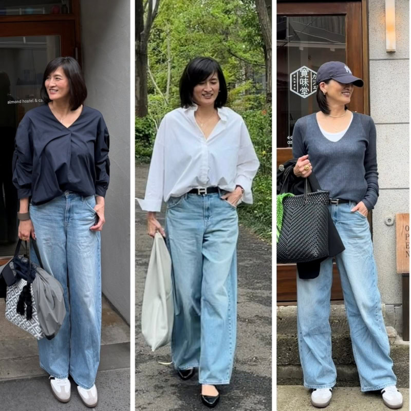 このブルーのみダメージ加工がありますが、アラフィフ世代でも取り入れやすくなっています。