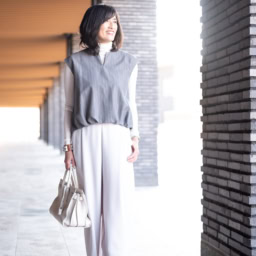 【50代ファッションスナップ】ザラで見つけたローライズのワイドデニムにひと目惚れ!ボリュームデニムは縦ラインを意識したコーデでスタイルアップ【ZARA】