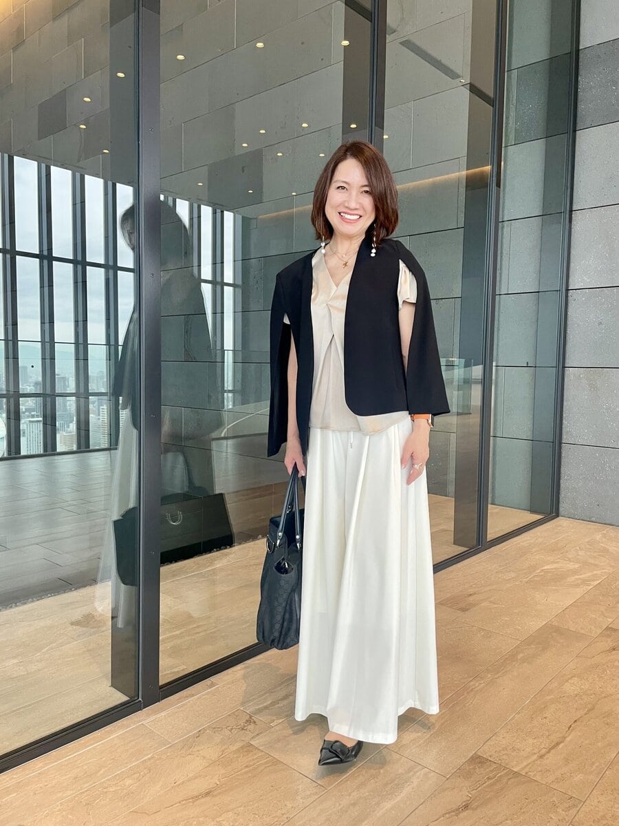 きちんと感の中にも抜け感や遊び心を忘れず、ご自身に似合われるファッションを楽しまれている姿が印象的でした!