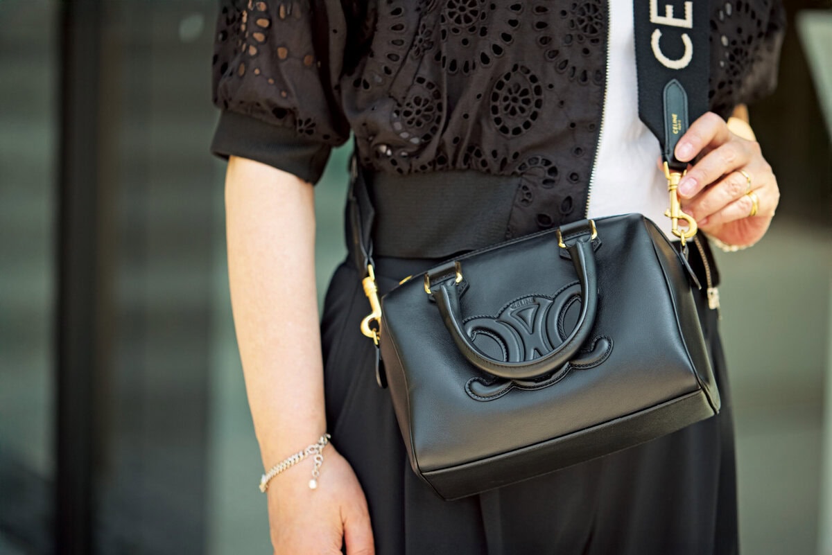 「両手があくショルダーバッグが好き。『セリーヌ』のバッグは、カジュアルになり過ぎず、スポーティコーデを品よくまとめてくれます」