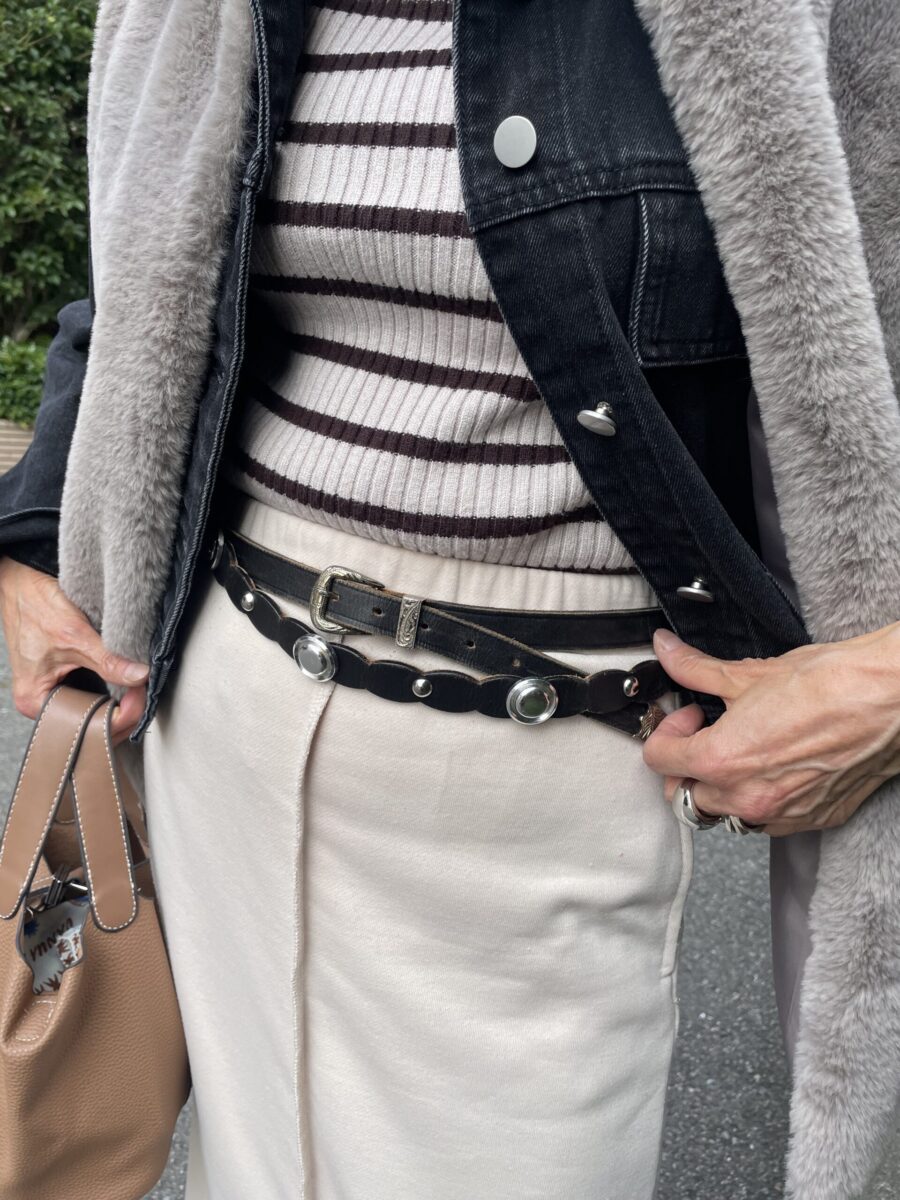 ベルトはBOSCH。「コーデのアクセントに。黒ですが細身なので重たくならないのも◎」
