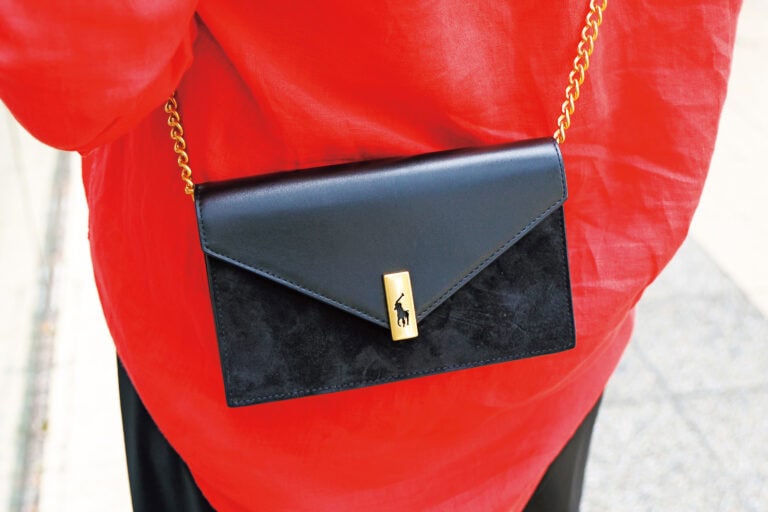 エレガントな「ラルフローレン」のバッグ。「夜のお出かけだけでなく、デニムなどカジュアルにも合わせやすく出番が多いです」