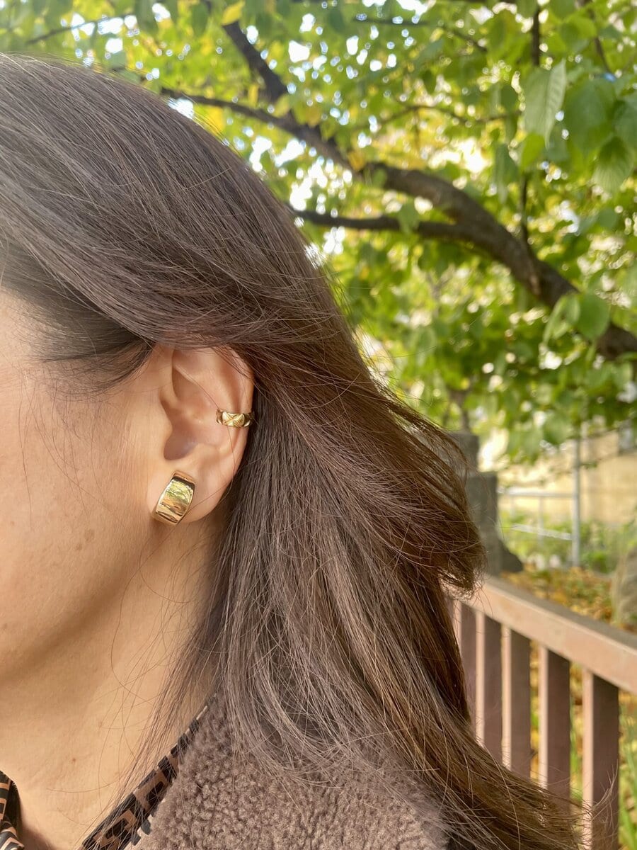 「シルバーになるとモードっぽくなるので、近頃アクセはゴールドが気分」