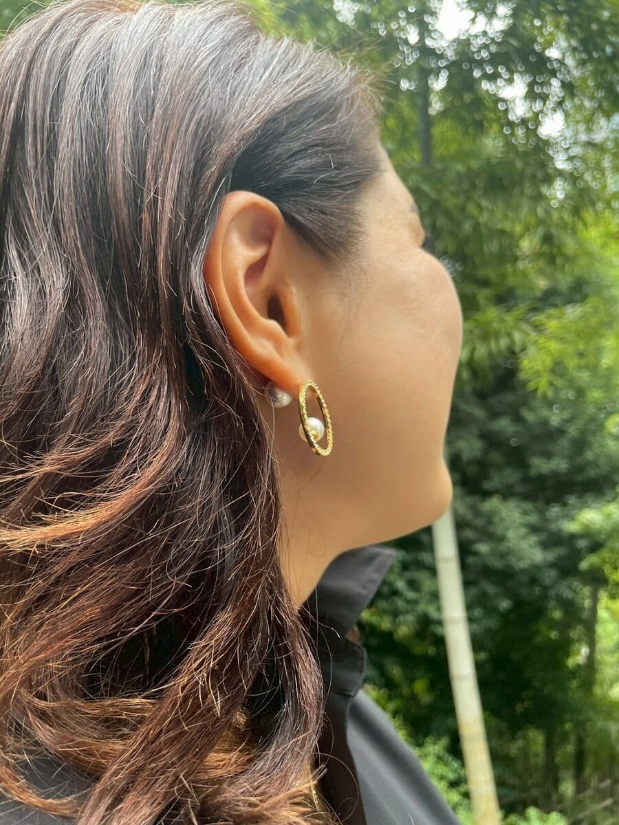 「ピアスはプチプラなんですが、ゴールド×パールのデザインをチョイス。その組み合わせがいつも気分を上げてくれます」