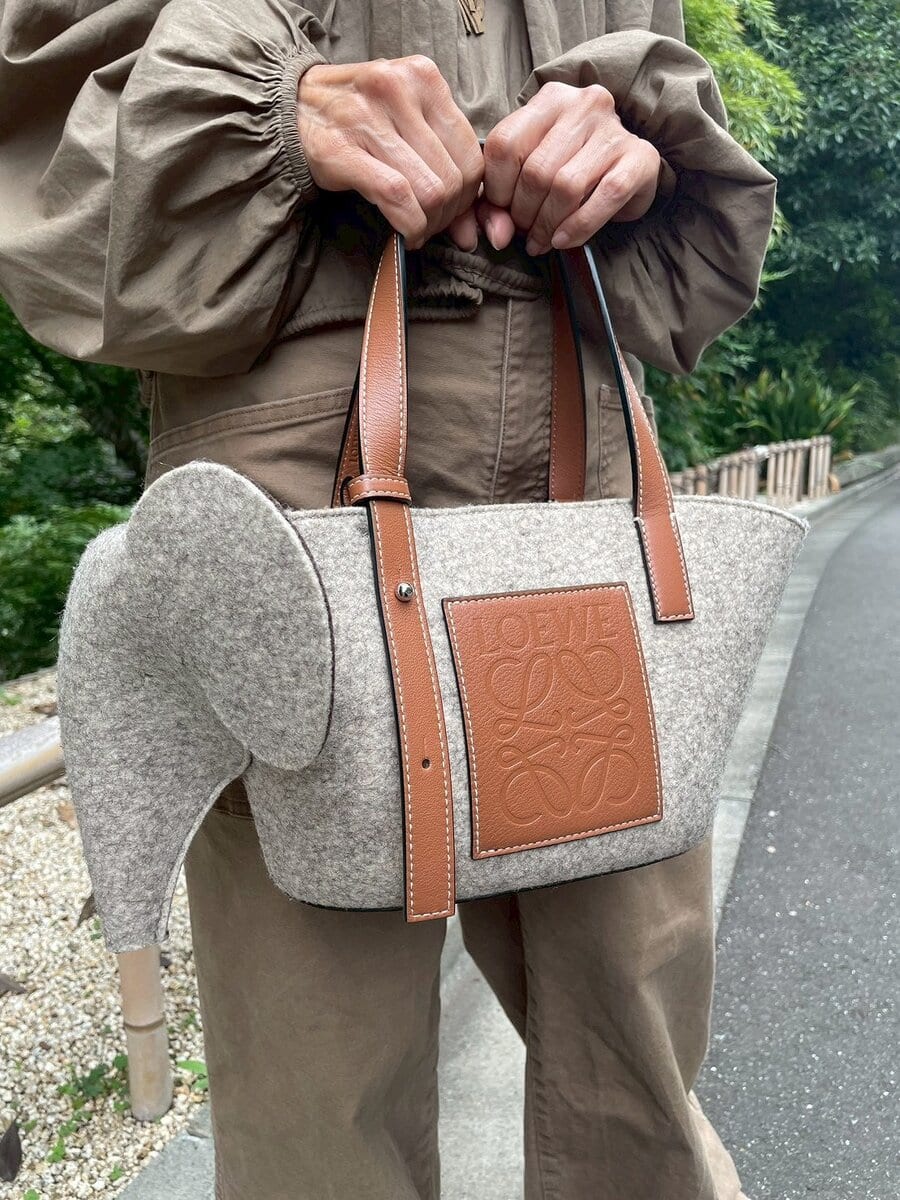 「いいものを一点投入するべく、今日のバッグは『LOEWE』のエレファントです。インパクトのある象のデザインが気に入っています」