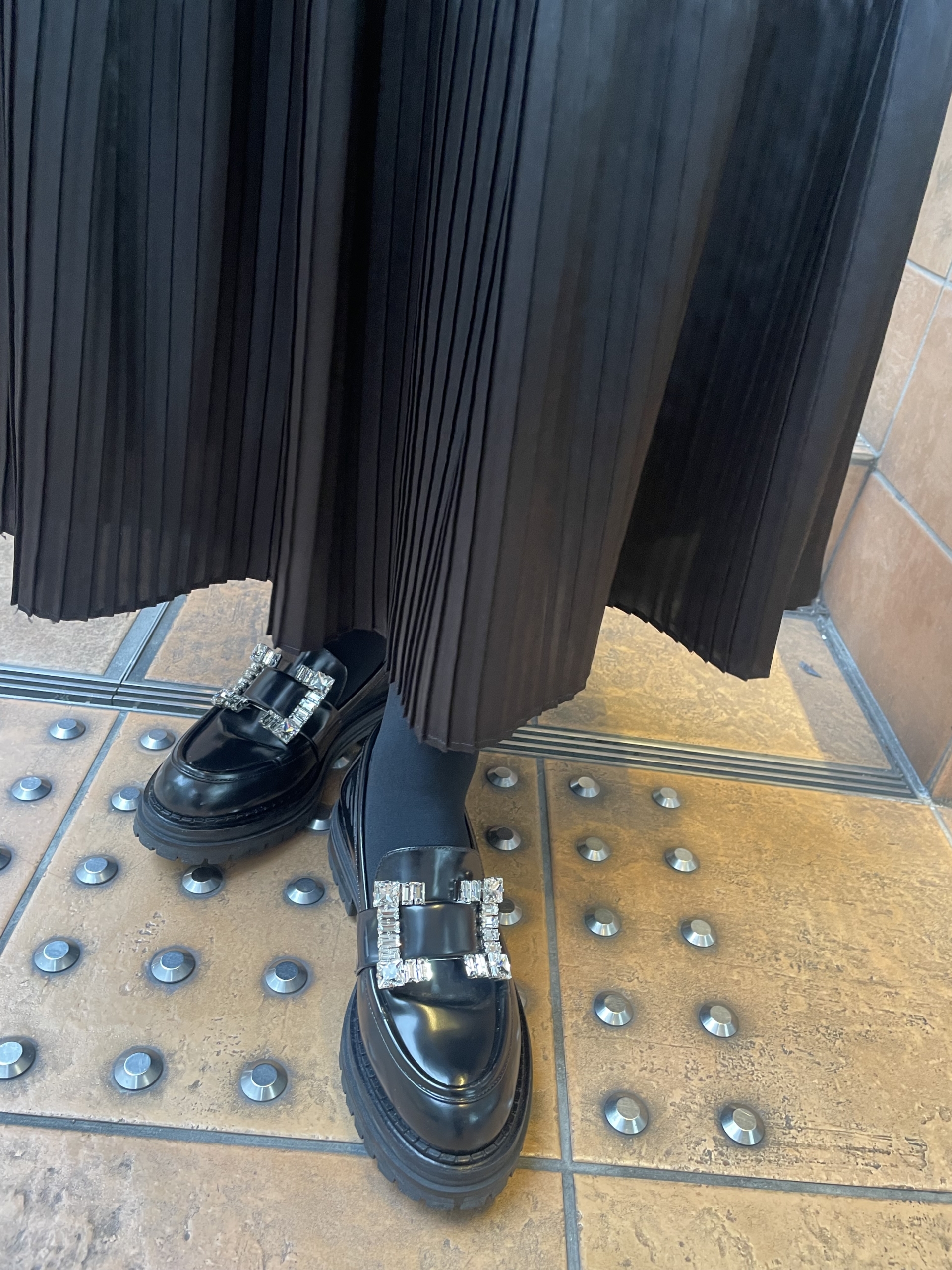 「シューズは『セルジオロッシ』。靴やバッグのシルバー金具がキラっと華やかにしてくれます」