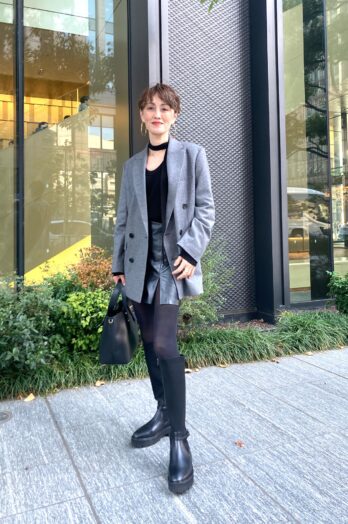 【60代お手本スナップ】「ユニクロC」のジャケットがお似合いの大阪マダム!「アディダス」のトラックパンツとブランドバッグを上手に取り入れた着こなし