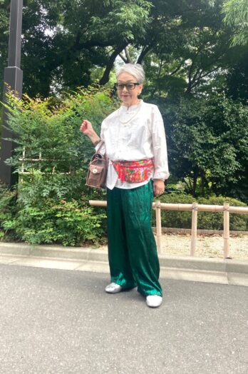 【60代お手本スナップ】「SHEIN」や「GU」を使ったおしゃれ上級者マダムの〈お呼ばれコーデ〉アジアンテイストが素敵です!
