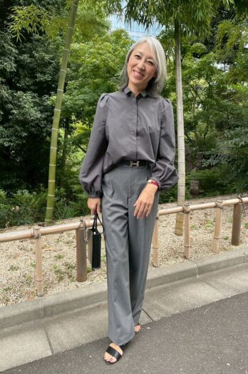 【60代お手本スナップ】「ユニクロ」のパンツでつくるワントーンコーデ!グレーが美しい洗練された大人の着こなしは必見!